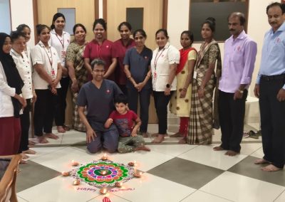 Art and Colour: Beautiful and intricate rangolis, created with vibrant colours and flowers, adorned the reception and waiting areas, injecting a festive spirit of peace and prosperity into the hospital environment.