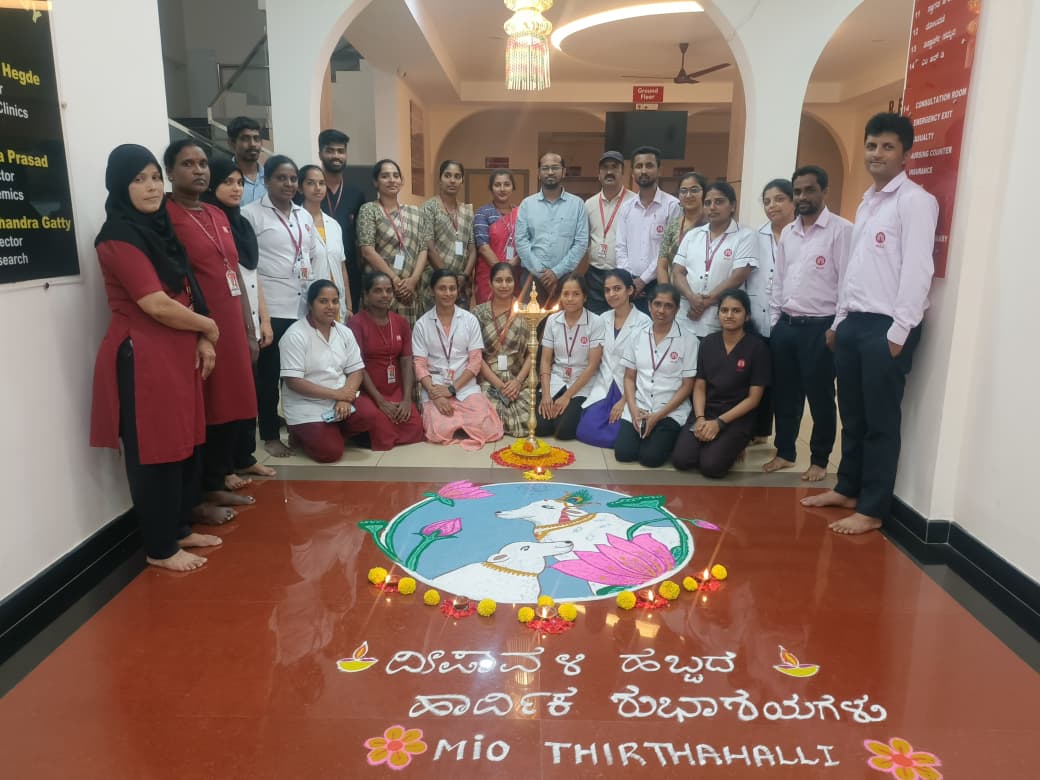 The “Festival of Lights,” Deepavali, was celebrated with great warmth, serenity, and hope on the evening of October 21st, 2025, across all M.I.O Hospital locations Pumpwell, Karangalpady, Udupi, and Thirthahalli.